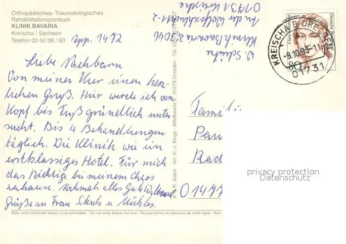 Kreischa Klinik Bavaria Rehazentrum Park Terrasse Gartenschach Kreischa postalisch gelaufen 1993 Erhaltung siehe scans [WerneD78] WernPID7