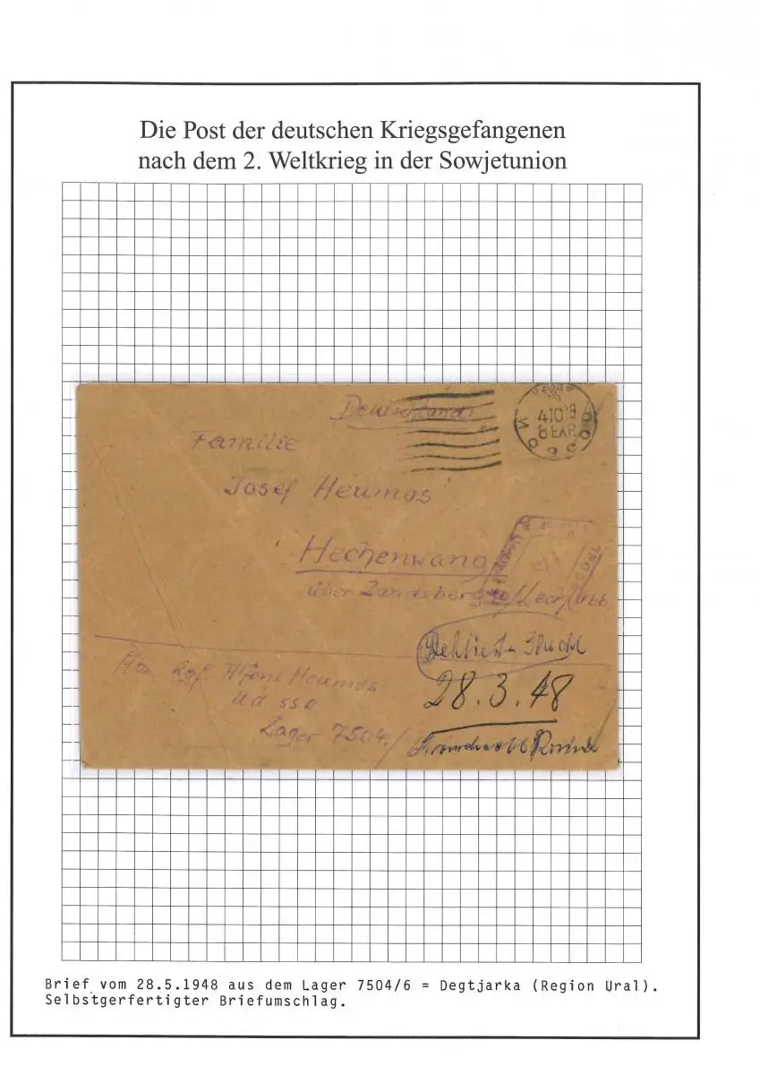 Poste de prisonniers de guerre Lettre Degtiarsk URSS Entrepôt 7313/2 Hechenwang du 28.3.1948
