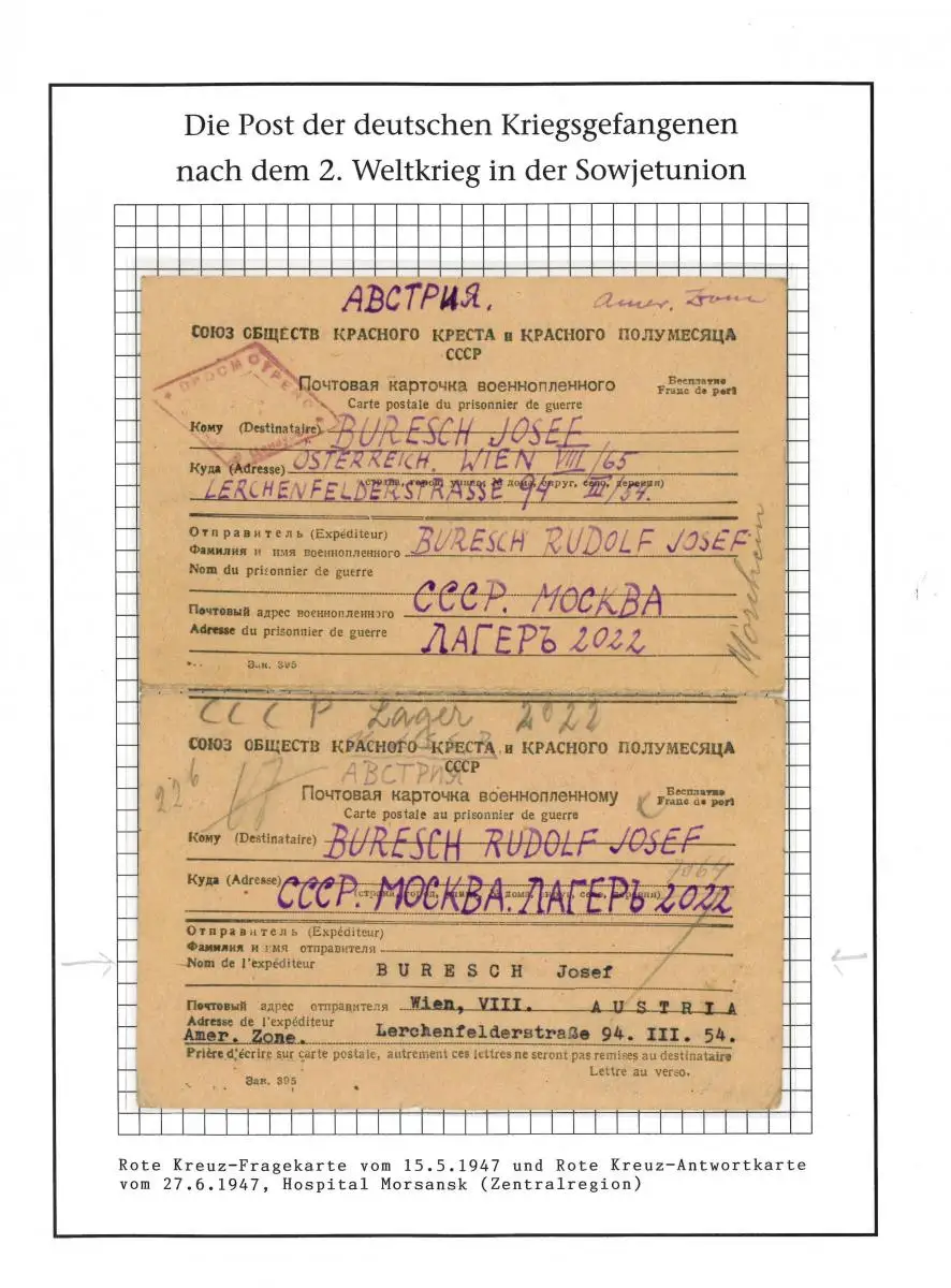 Poste de prisonniers de guerre Hospital 2022 Morjansk URSS Vienne + Antw. 15.5. + 27.6.47