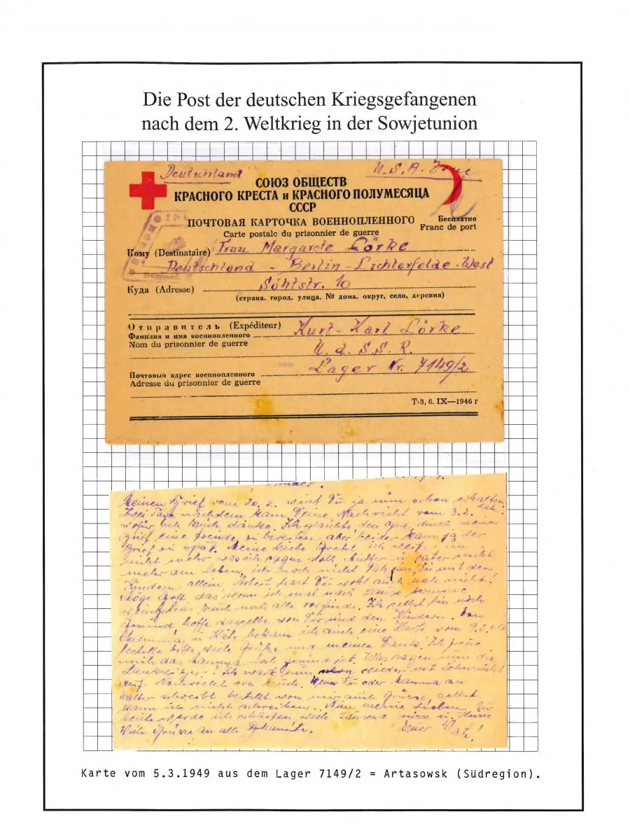 Poste de prisonniers de guerre Carte du camp 7149/ 2 Charkov URSS vers Berlin 5.3.1949