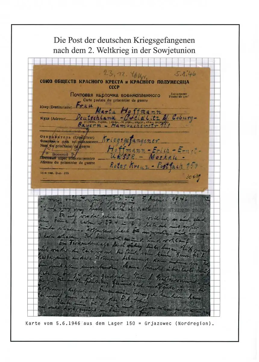 Poste de prisonniers de guerre camp 150 Grjazovets URSS vers Credlitz /Coburg 5.8.1946