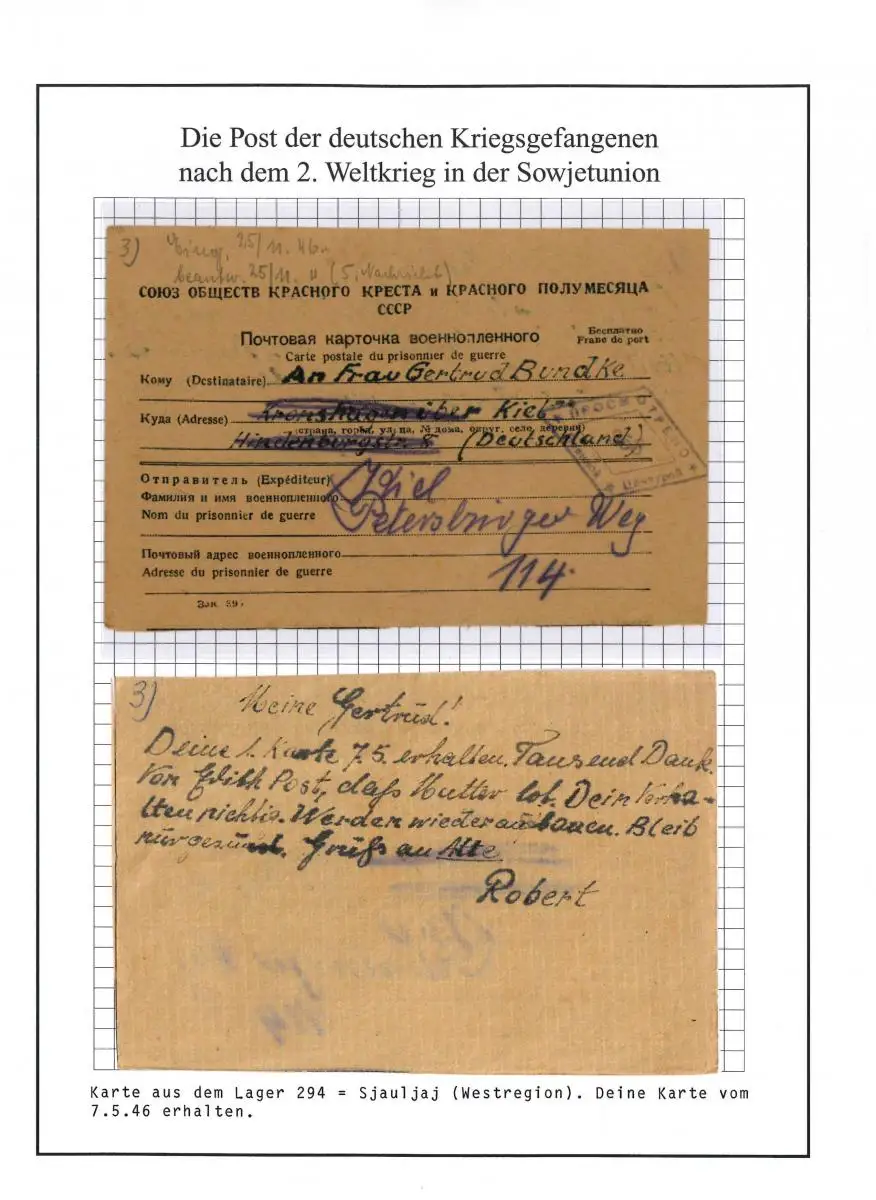 Poste de prisonniers de guerre Camp 294 Šiauliai (Chaules) URSS vers Kiel, 25.11.1946
