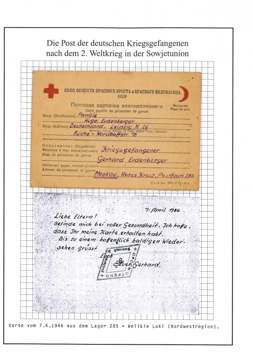Poste de prisonniers de guerre Camp 7285 Welikie Luki URSS vers Leipzig du 7.4.1946