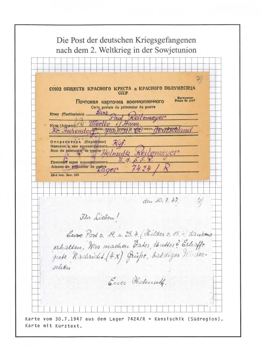 Poste de prisonniers de guerre Camp 7424/ R Naltchik / Melitopol URSS Werte 30.7.1947