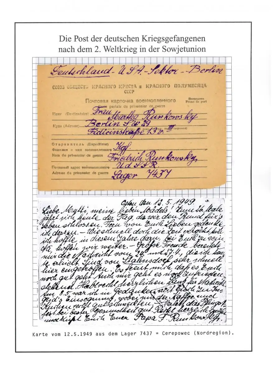 Poste de prisonniers de guerre Camp 7437 Tcherepowez URSS Berlin (secteur des États-Unis) 12.5.1949