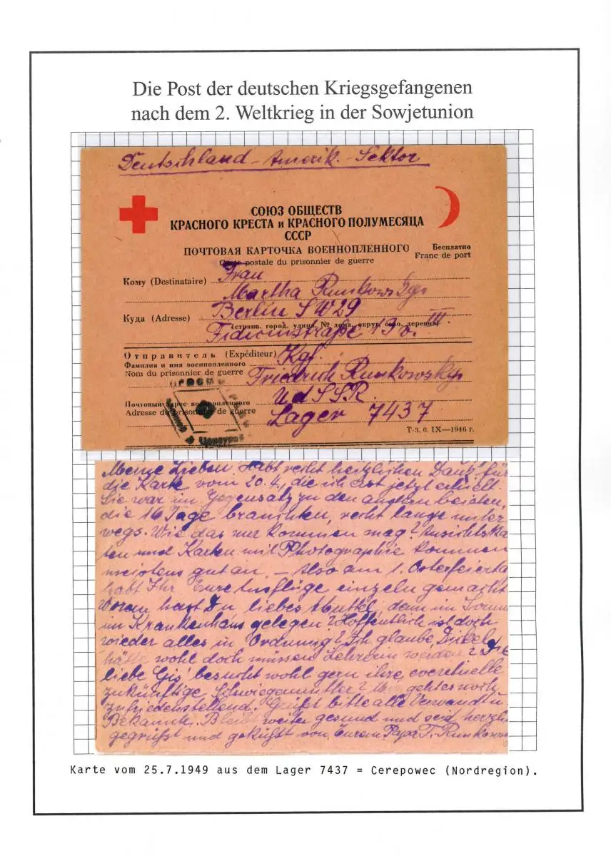 Poste de prisonniers de guerre Camp 7437 Tcherepowez URSS Berlin (secteur des États-Unis) 25.7.1949