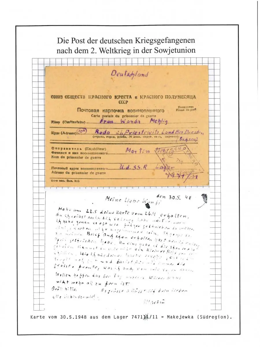 Poste de prisonniers de guerre camp 7471/ 11 Makejevka URSS vers Roda du 30.5.1948