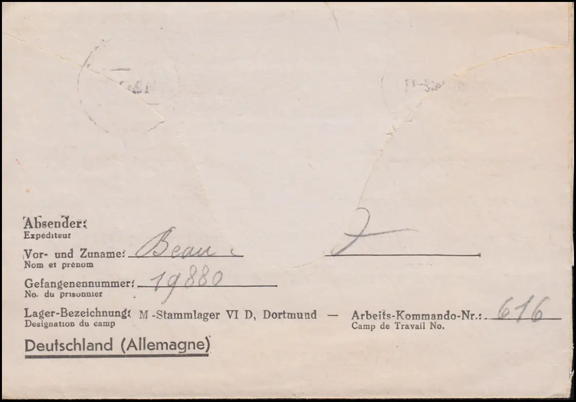 Poste de prisonniers de guerre Stalag VI D Dortmund Tarnschampt 10.2.1942