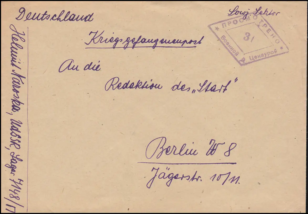 Poste de prisonniers de guerre du camp soviétique 7148 censure 31 à Berlin