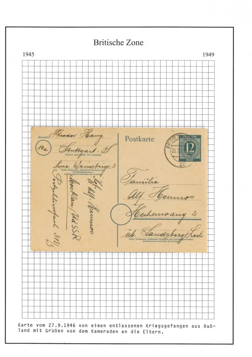 Poste de prisonniers de guerre de camarades licenciés aux parents Pforzheim 28.9.1946