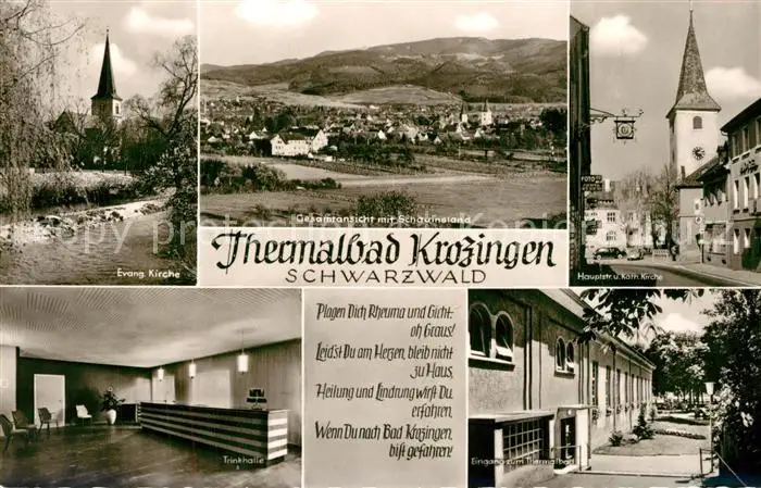Krozingen_Bad Evangelische Kirche Hauptstrasse Katholische Kirche Trinkhalle Krozingen_Bad postalisch nicht gelaufen 1960 Erhaltung siehe scans [KathaD81] Kathoren