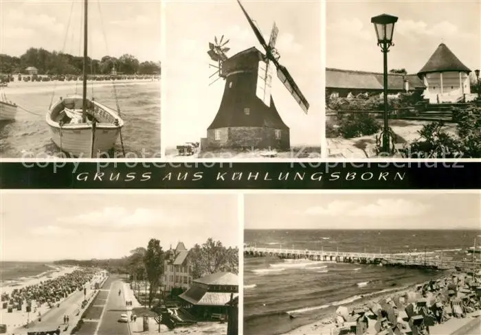 Kuehlungsborn_Ostseebad Boot Windmuehle Kurpark Strand Promenade Seebruecke Kuehlungsborn_Ostseebad postalisch gelaufen 1968 Erhaltung siehe scans [FriedD77] Frierer