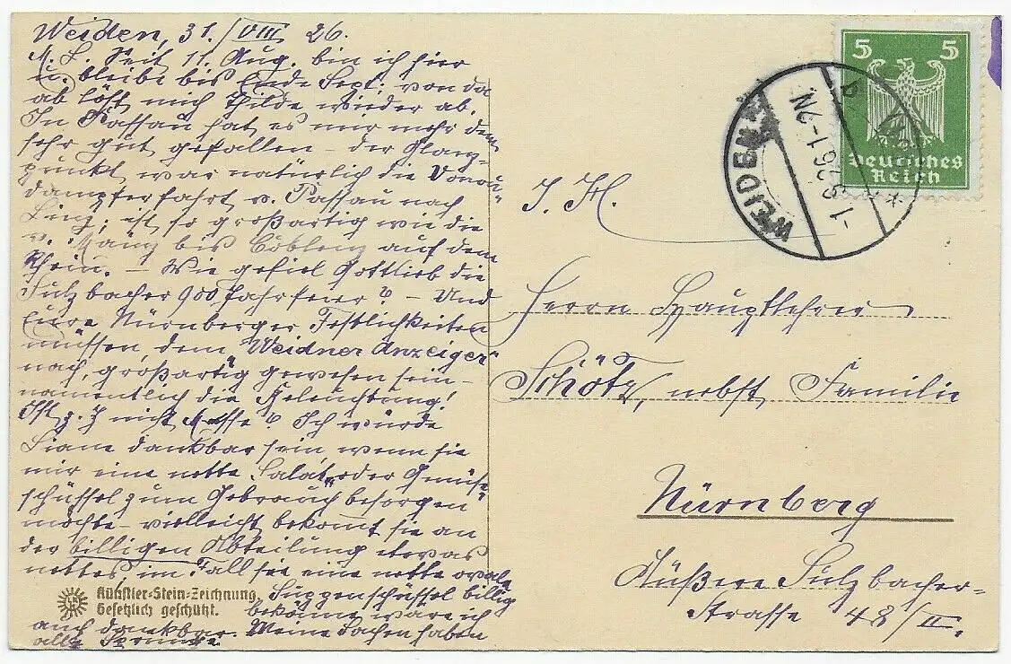 Carte des arts Parkstein après Merian de Weiden 1926 à Nuremberg