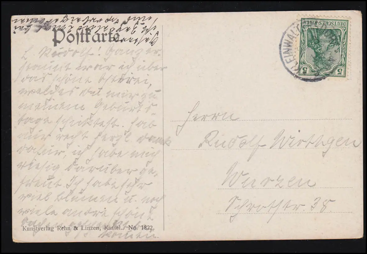 AK Artiste M. Müller: Lumières boisées avec des cerfs, BONJOUR 24.3.1914