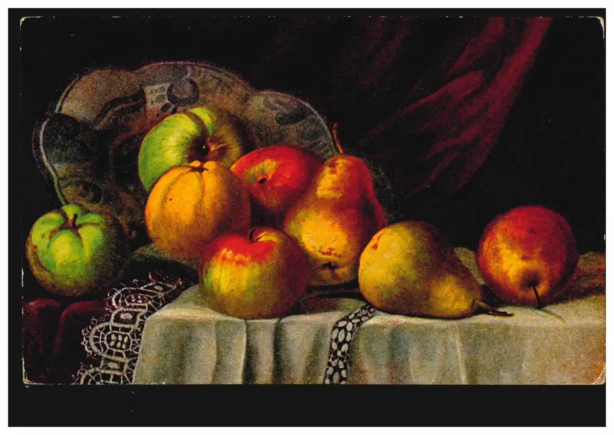 Artiste-AK Paul Heckscher: nature morte avec pommes et poires, inutilisé