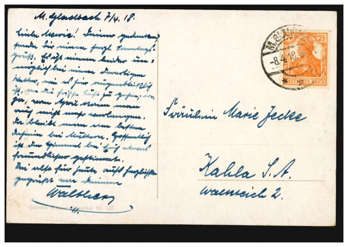 Carte d'artistes Peinture de Rudolf Fuchs: Lilly, MÖNCHENNGLADBACH 8.4.1918