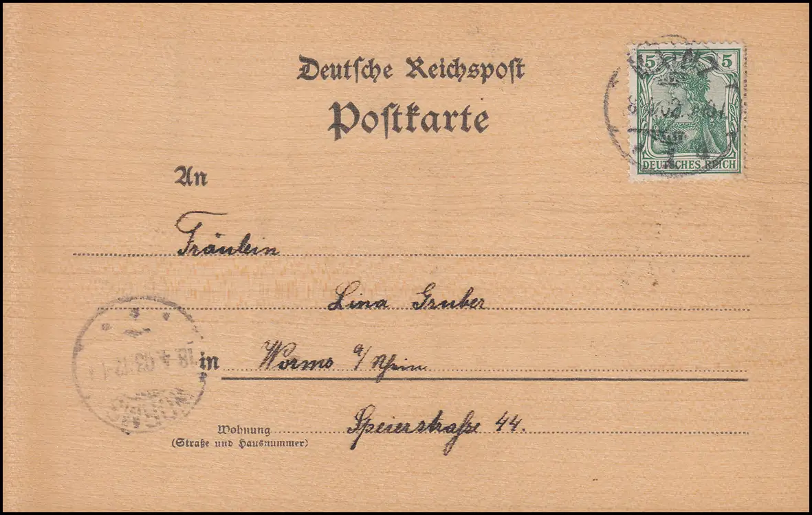 Artiste - Carte postale en bois de MAINZ 8.4.02 à WORMS 18.4.