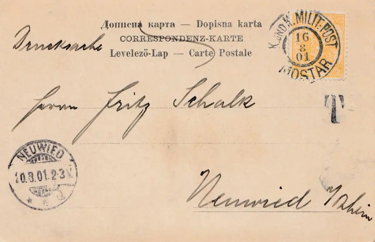 Kuk militaire Post 1901: Mostar vers Neuwied - Tax