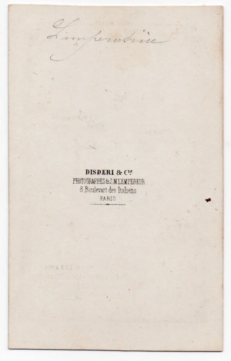 Exemple emblématique de la photographie du Second Empire, cette carte de visite était très prisée comme objet de collection ou de souvenir à l’époque, Disdéri a su capturer l’élégance et le prestige de l’impératrice, Eugénie de Montijo, épouse de Napoléon III, contribuant ainsi à la diffusion de son image dans toute l’Europe