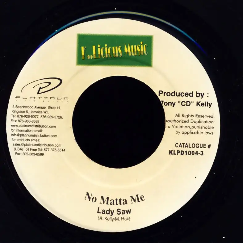 7" Single Lady Saw - No Matta Me, couverture neutre, dossier d'état VG+; Fabriqué en Jamaica 1998 K..Licicus Music KLPD 1004-3, pistes No Matta Me., Bookshelf [verset]