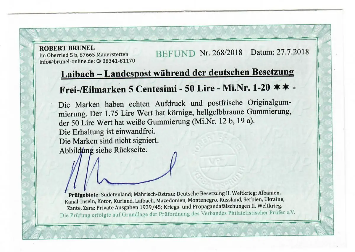 Laibach: MiNr. 1-20, frais, ** (avec 12b et 19a)