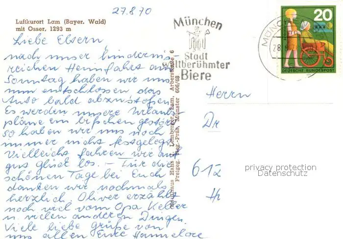 Lam_Oberpfalz mit Osser Fliegeraufnahme Lam_Oberpfalz postalisch gelaufen 1970 Erhaltung siehe scans [WerneD78] WernPID7