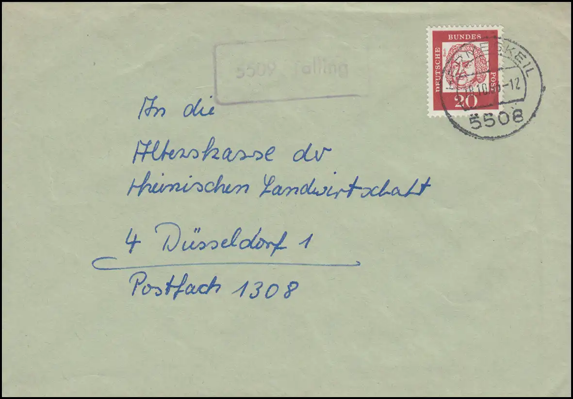 Landpost 5509 Talling Lettre HERMESKEIL 18.10.63 à la Caisse d'âge de Düsseldorf