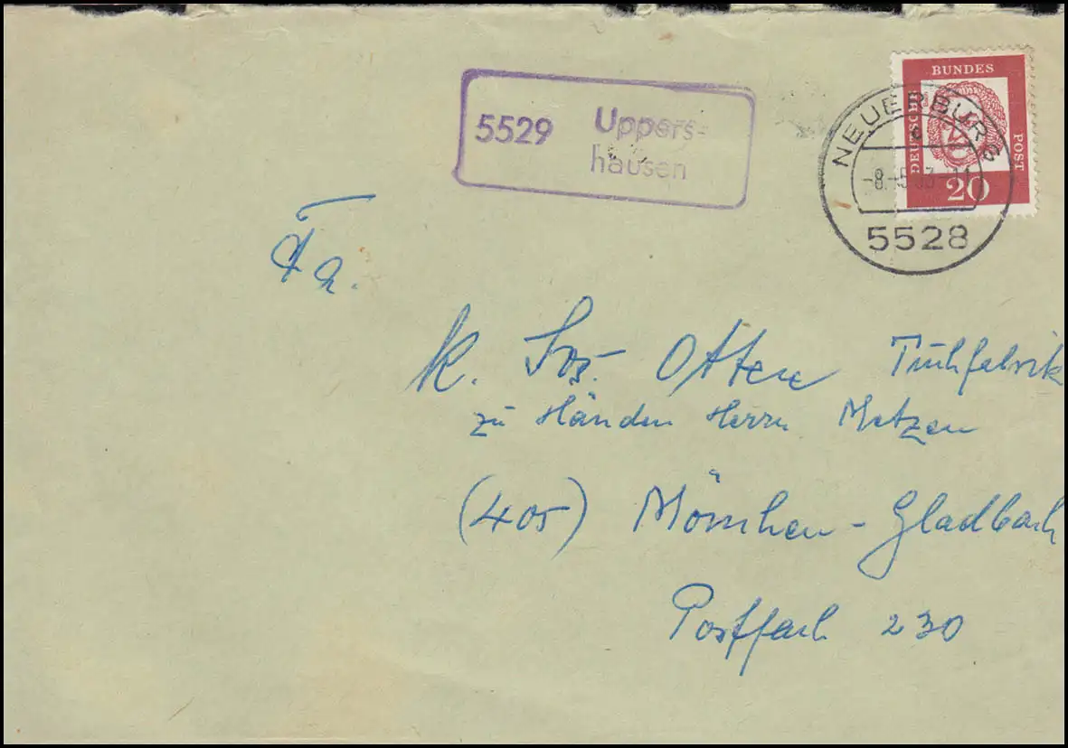 Landpost 5529 Uppershausen sur lettre NeueBURG 8.5.1963 à Mönchengladbach