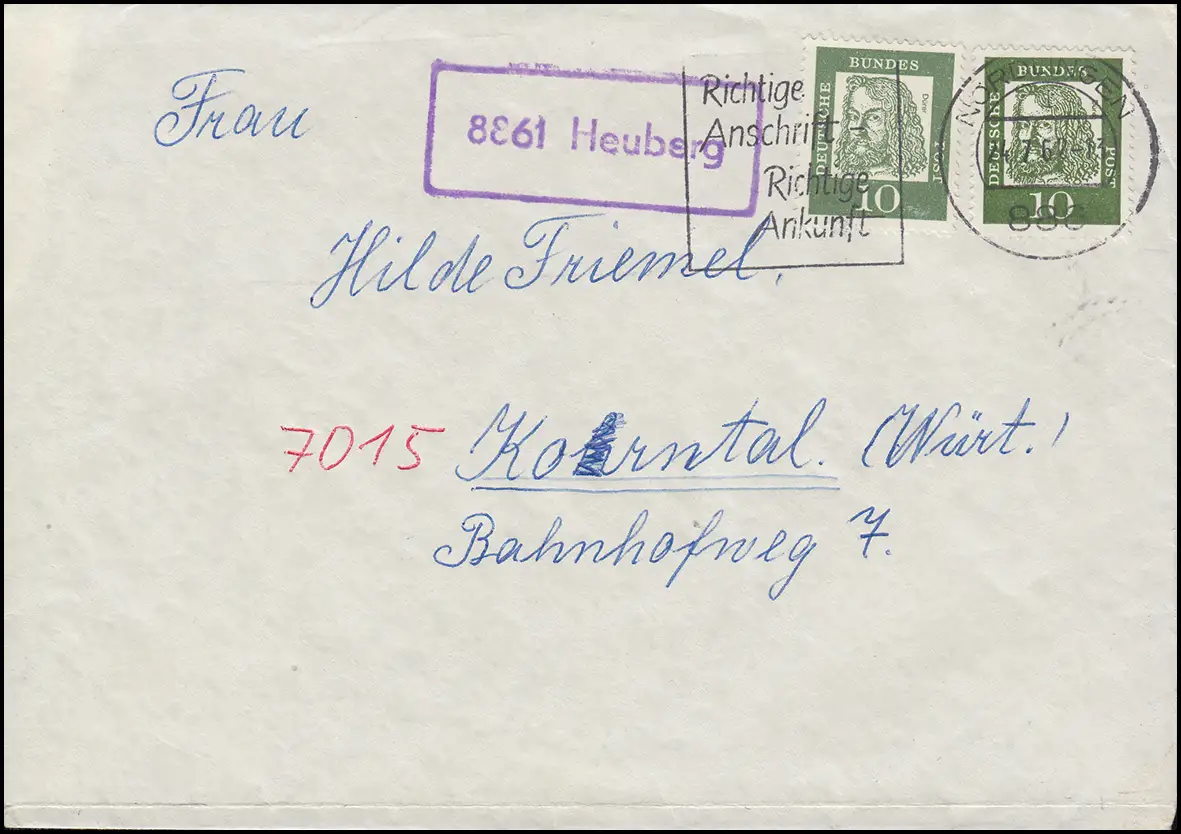 Post de campagne 8861 Heuberg sur télex NÖRDLINGEN 24.7.62 avec Dürer 350x+y