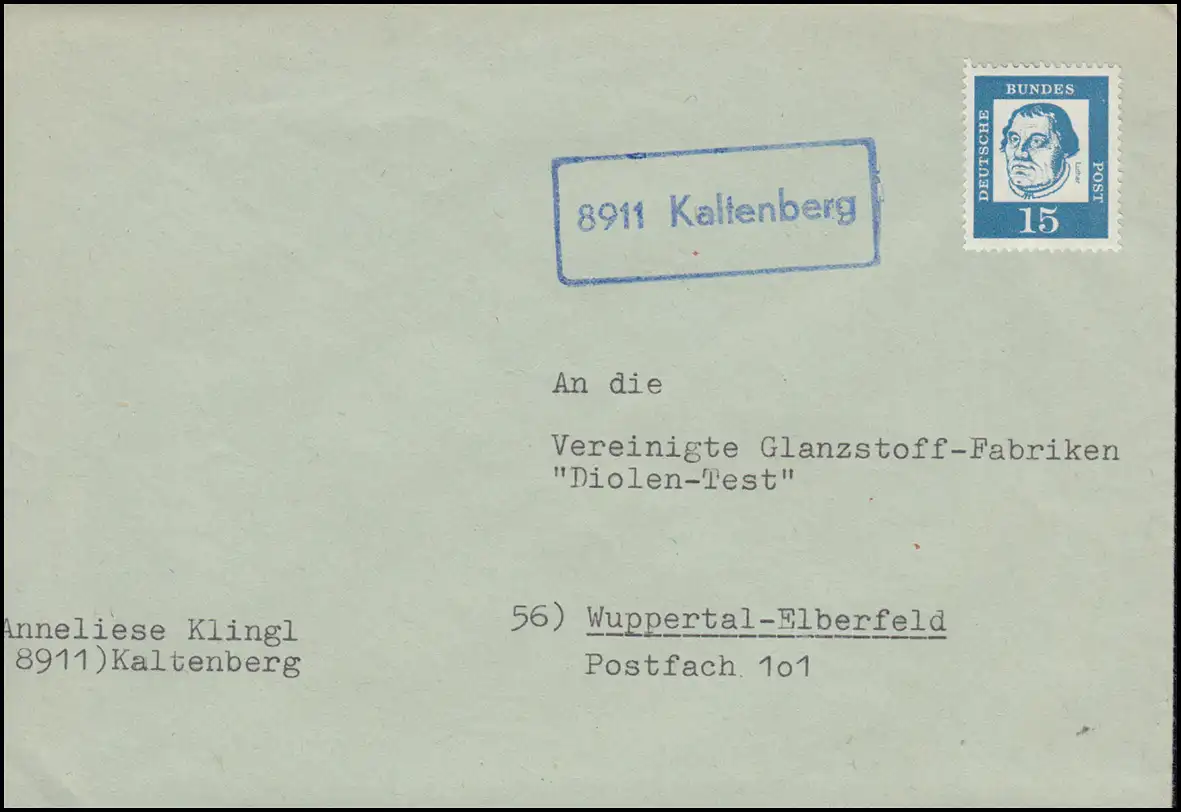 Landpost 8911 Kaltenberg Chose d'impression de correspondance - marque non dégradée selon Wuppertal