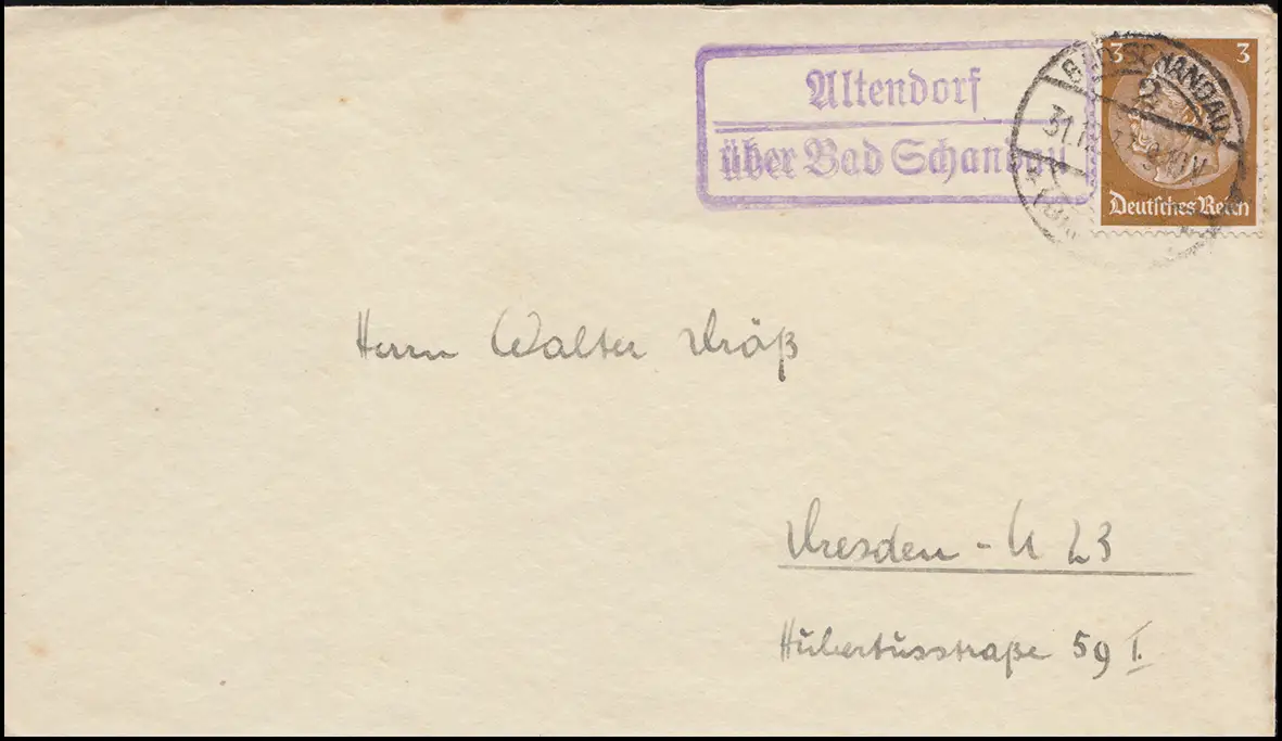 Landpost Altendorf sur BAD SCHANDAU 31.12.1933, sur impression après Dresde