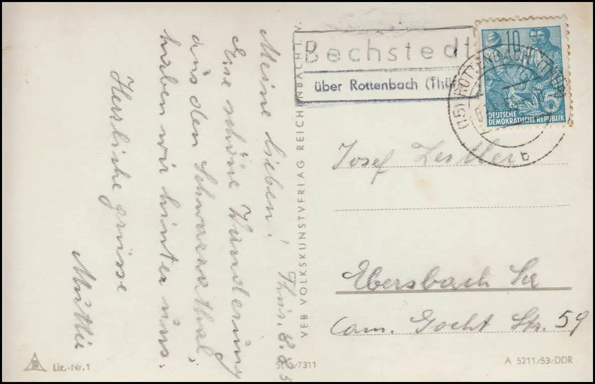 Le poste de campagne BECHSTEDT sur ROTTENBACH (Thür) 8.8.55 sur la photo AK Schwarzburg Schloss