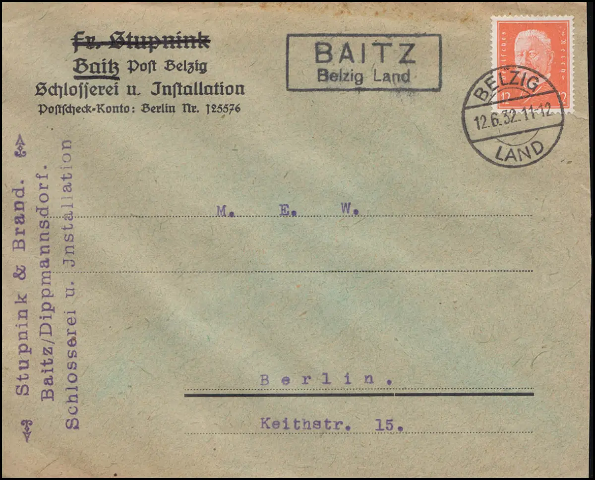 Landpost Baitz Dippmannsdorf Post Belzig Land 12.6.1932