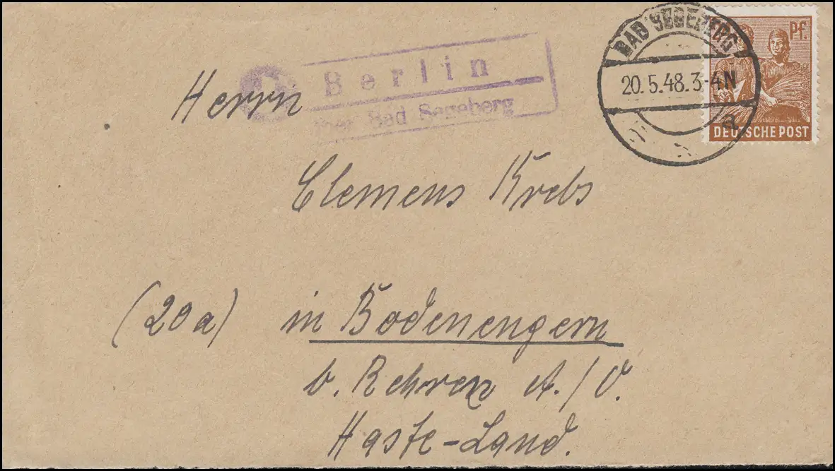 Landpost Berlin via BAD SEGEBERG 20.5.48 en avant-poste avec EF 951
