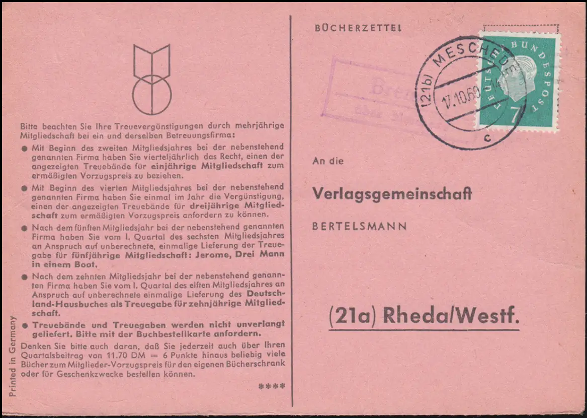 Landpost Bremke sur MESCHEDE 17.10.1960 sur les livres de Rheda/Westf.