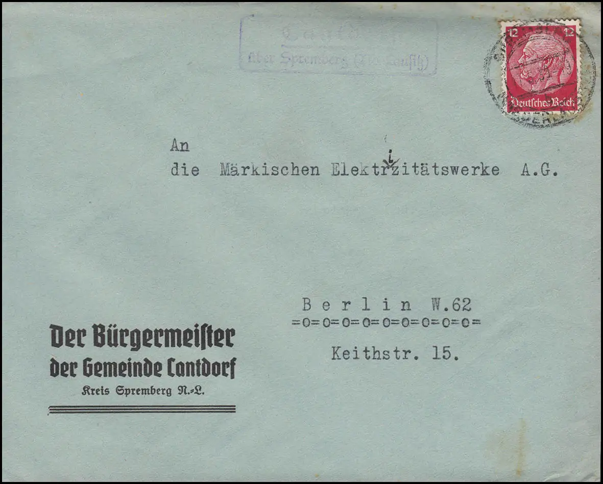 Pays-Bas Post CANTDORF via SPREMBERG Basse-Saxe 11.5.39 sur lettre à BERLIN