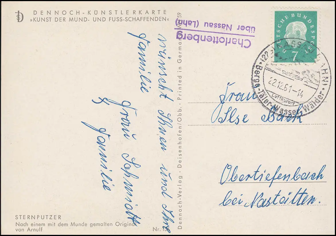 Landpost Charlottenberg sur Nassau (Lahn), NASSAU 22.12.61