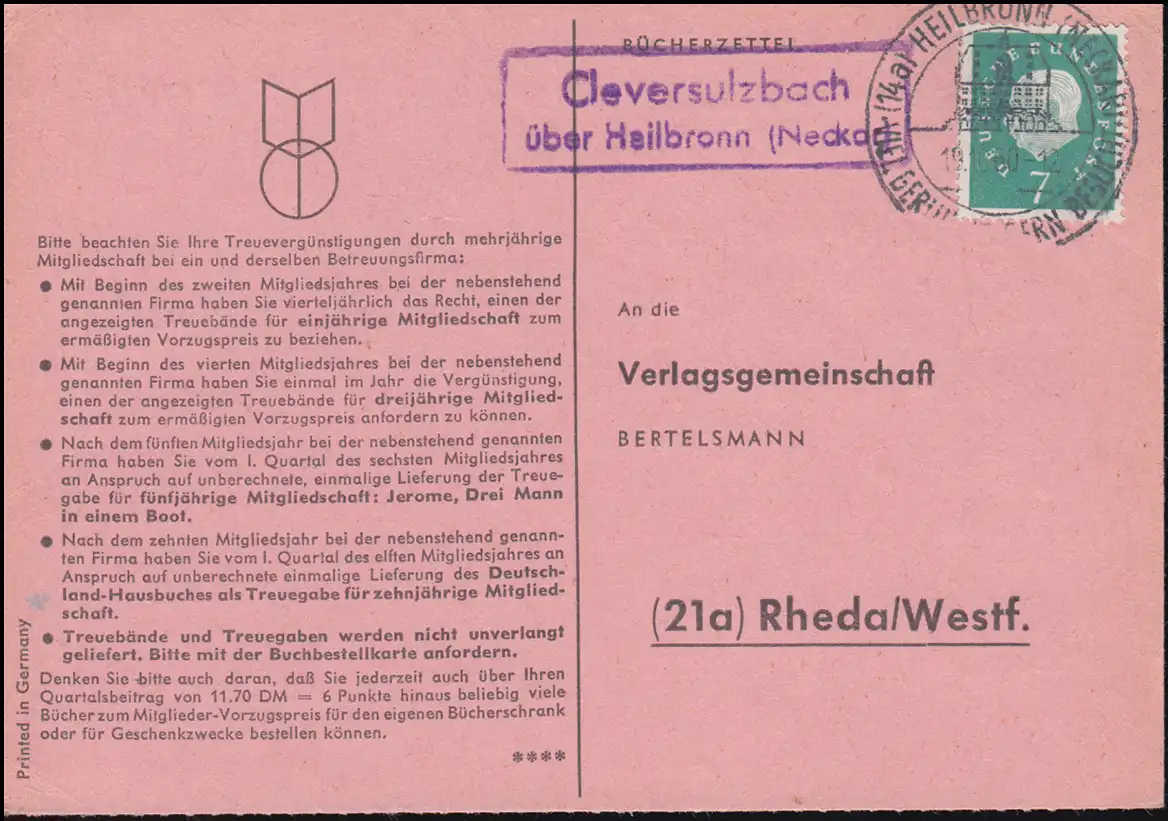 après Rheda/Westphalie comme carte de commande de livre à la communauté d'édition Bertelsmann Examen: original Référence produit: 00000000035609>Note: Cet article n'est disponible qu'une seule fois. Vous recevrez exactement l'article représenté.