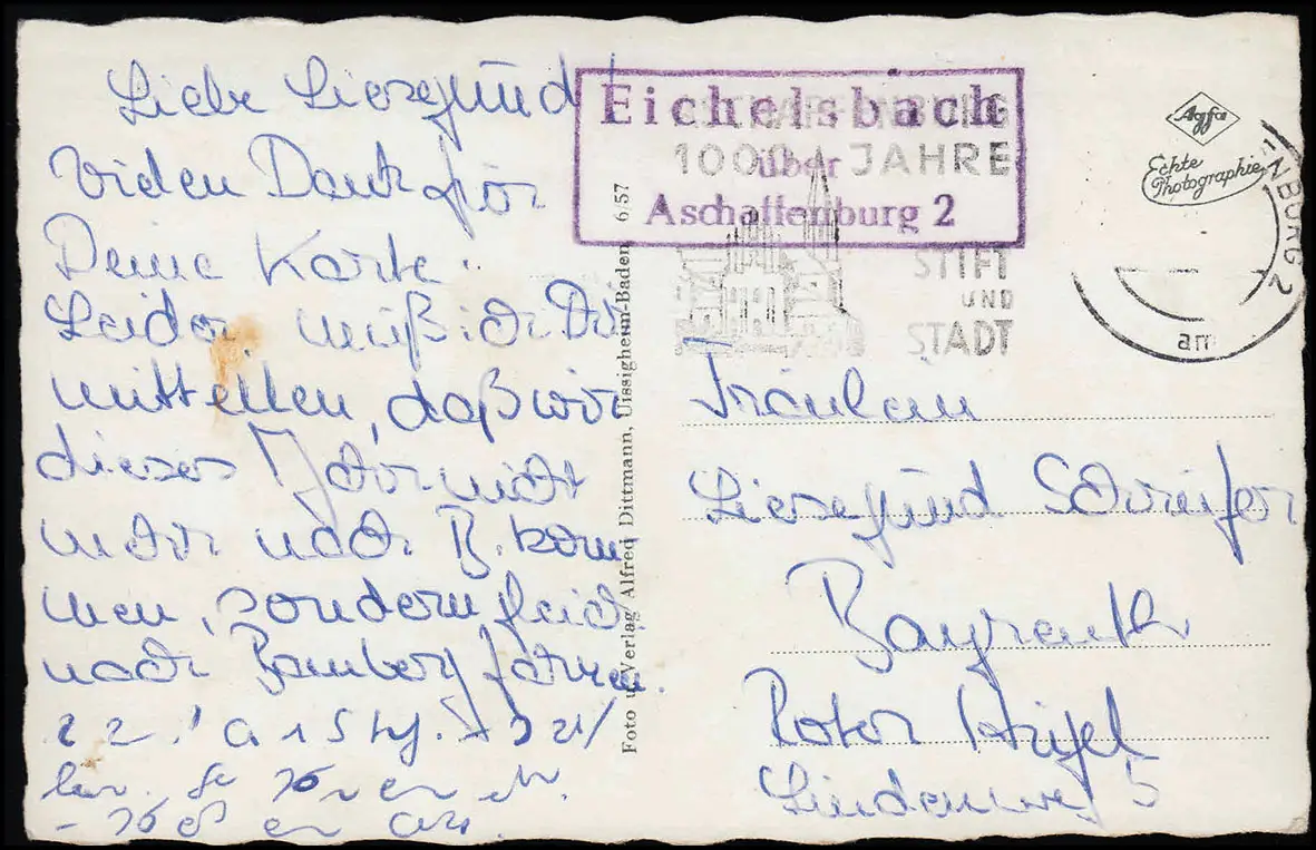 Landpost Eichelsbach sur ASCHAFENBURG 2 AK Eichelsbach Vues locales vers 1957