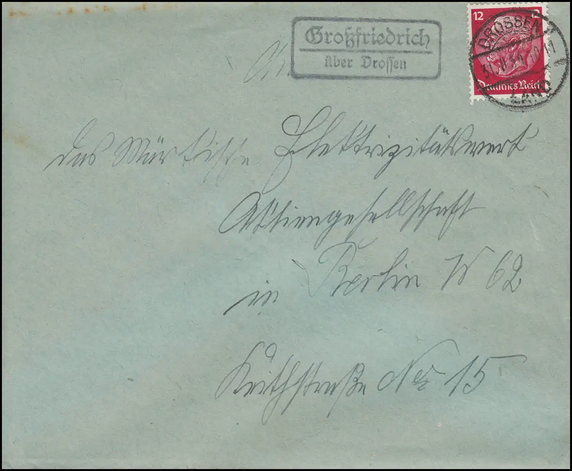 Le courrier de Landpost GROß FRIEDRICH sur DROSSEN /Ośno Lubuskie 31.8.1930 vers BERLIN