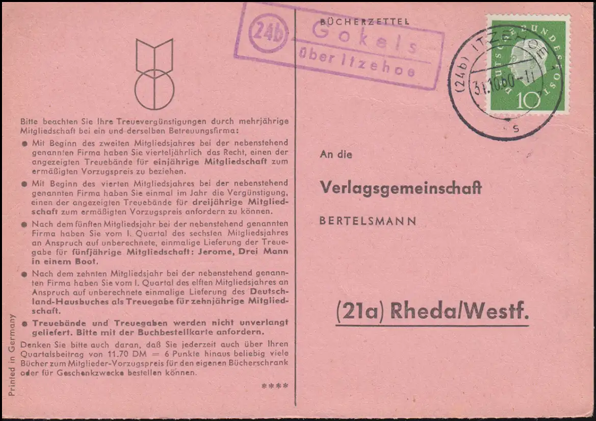 Pays-Bas: Gokels sur SITZEHOE 31.10.1960 sur les brochures de Rheda/Westf.
