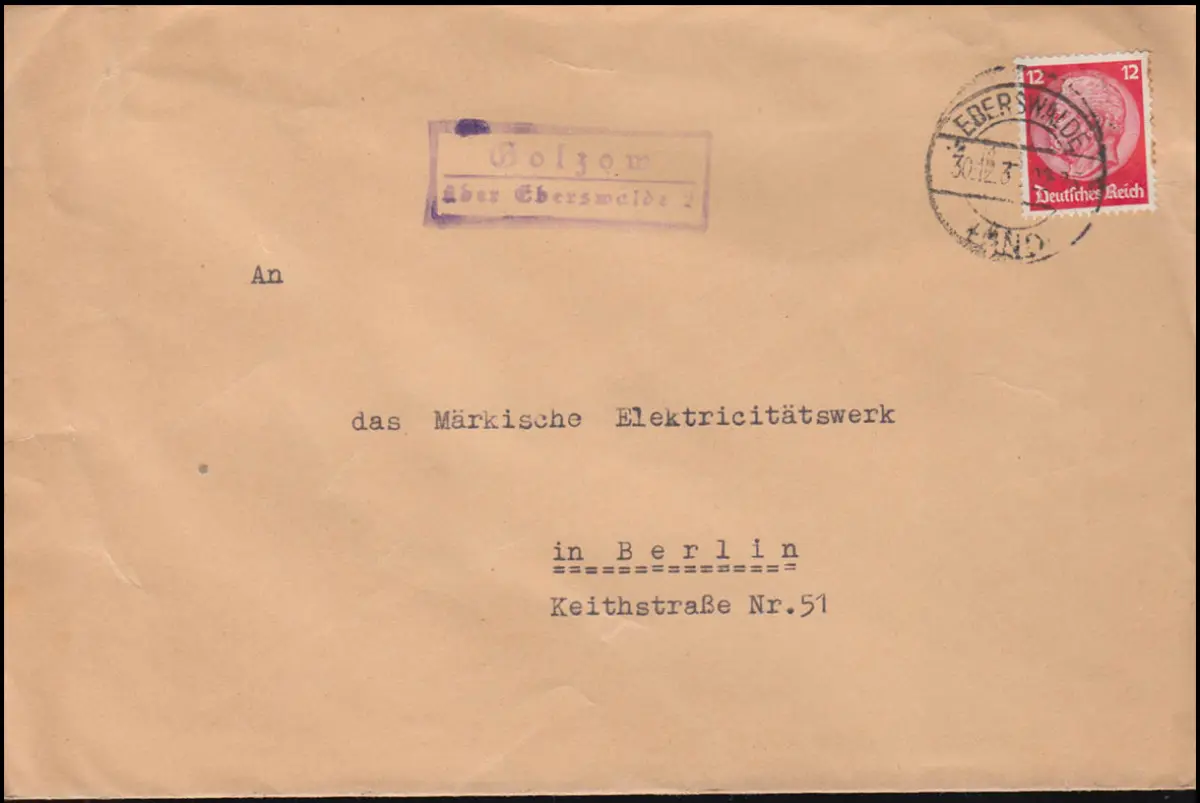 Landpost Golzow über Eberswalde 2 Land - 30.12.37