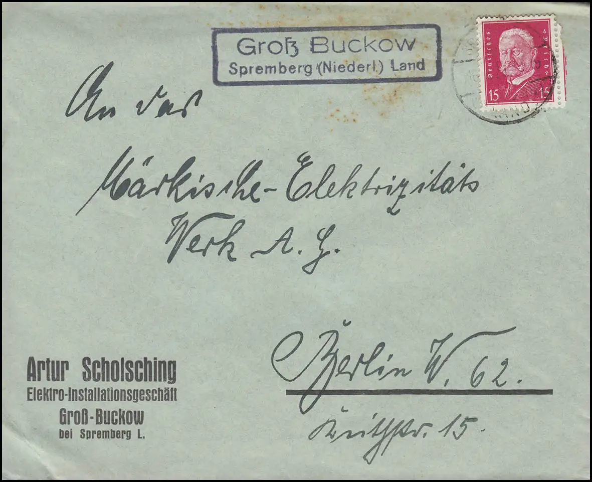 Landpost Gross BUCKOV via SPREMBERG Niederlausitz (Land) 16.3.1929 vers BERLIN