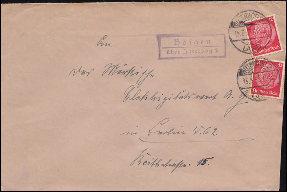 Landpost Höfgen über Jüterbog 2 - 15.3.1937