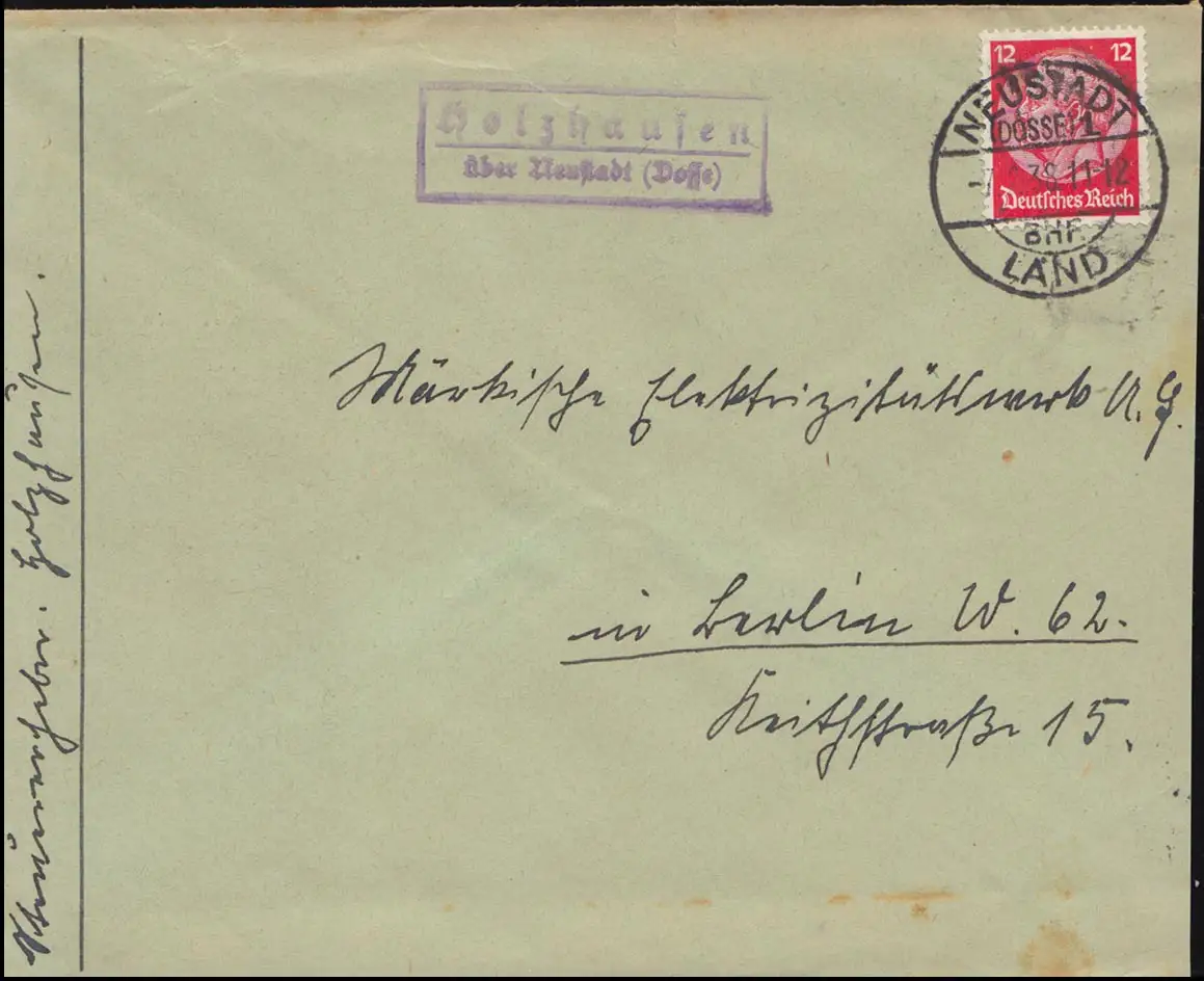 Landpost Holzhausen sur NEUSTADT (DOSE) LAND 7.2.1938 sur lettre à Berlin