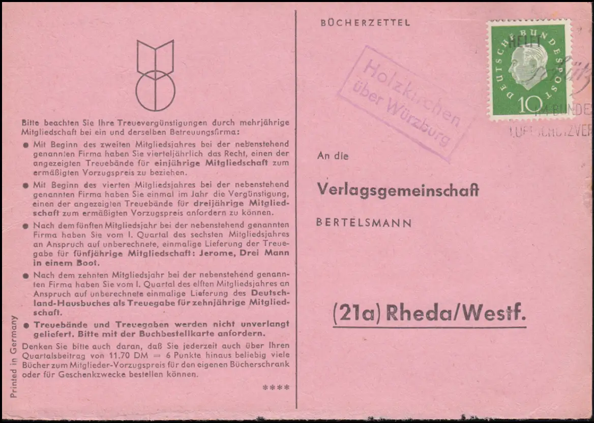 Landpost Holzkirchen au sujet de Würzburg sur les brochures de Rheda/Westf. vers 1960