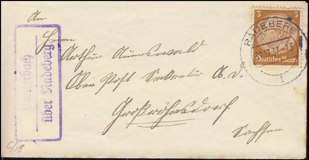Landpost Lauterbach sur RADEBERG 31.12.1937 vers Grossröhrsdorf