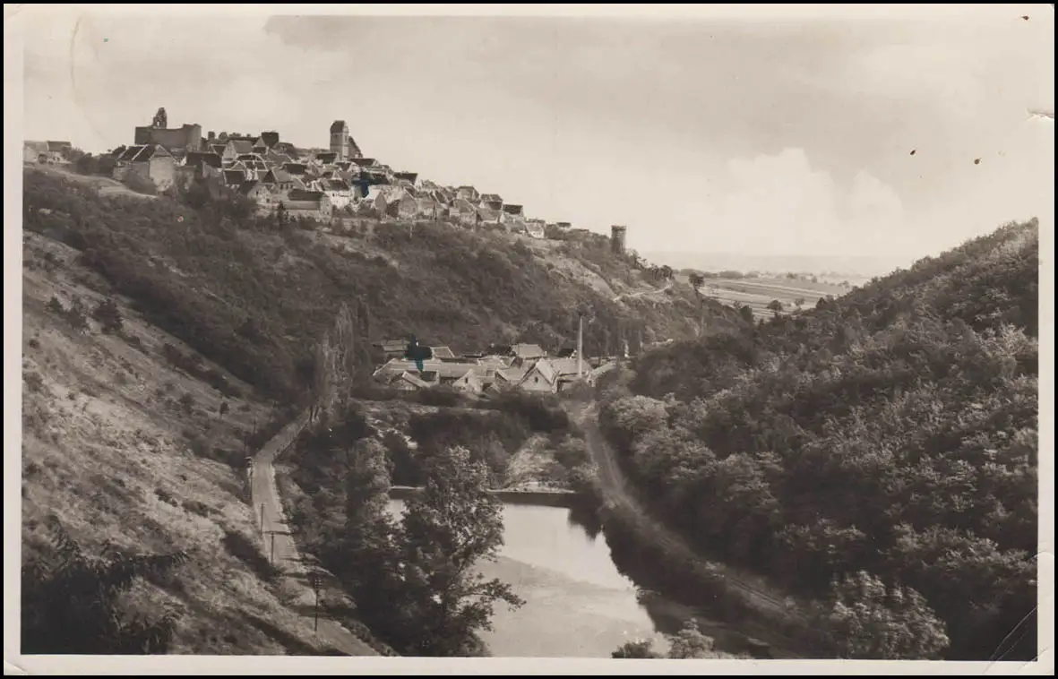 Le courrier de la campagne sur la ville de NEULEININGEN 27.6.52 sur photo AK Château Ville d'Eckbachtal