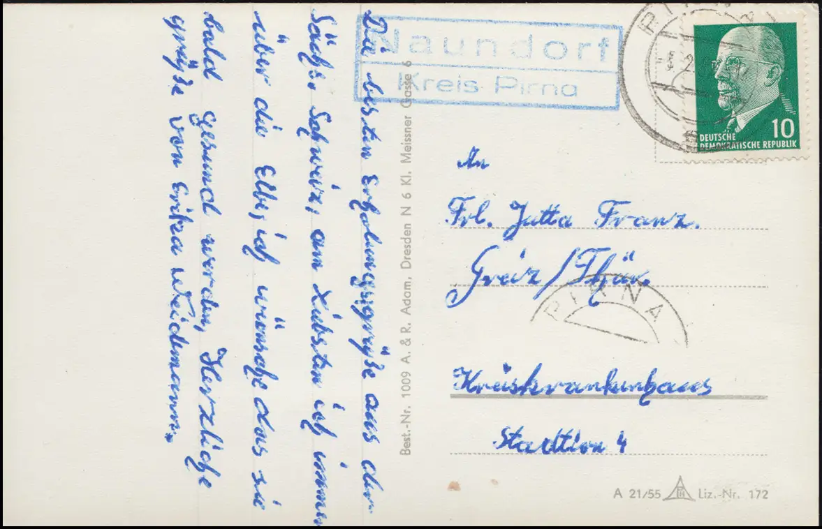 Landpost Naundorf Kreis PIRNA 5.2.1962 sur AK Winter en Suisse Saxonne