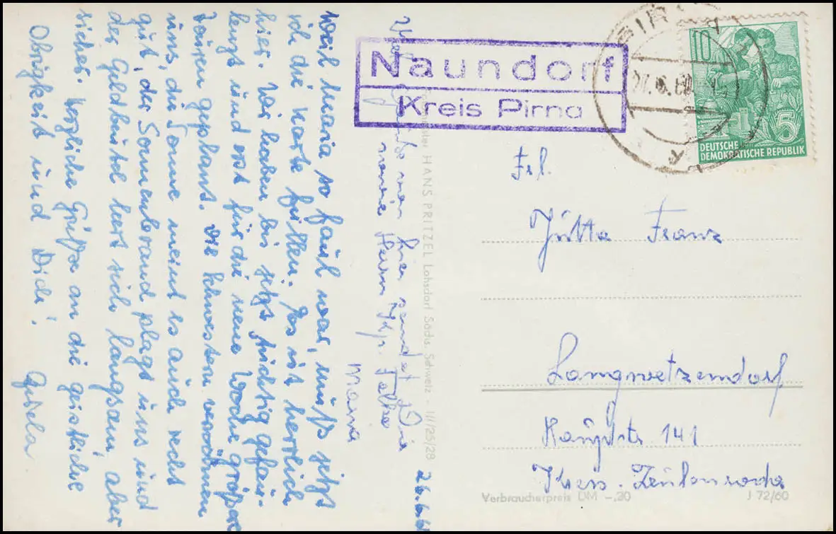 Landpost Naundorf via PINA 27.6.60 sur AK Merlefall et environs avec 10 images